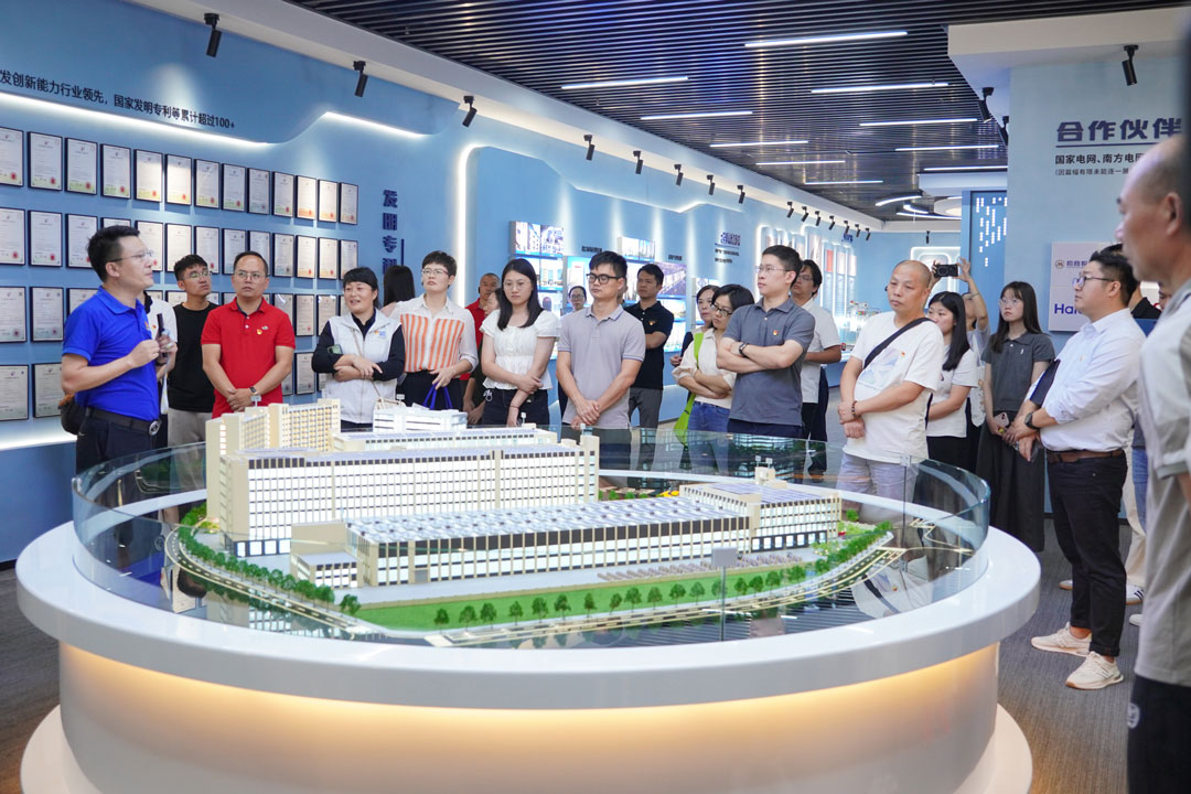 隨后,在楊彥等的陪同下,王奇一行來到民興科技展廳參觀,詳細(xì)了解企業(yè)發(fā)展歷程、產(chǎn)業(yè)布局、科技創(chuàng)新、企業(yè)文化、社會責(zé)任等。每到一處,王奇等都認(rèn)真聆聽講解、頻頻拍照記錄,在觀摩中領(lǐng)略企業(yè)獨特風(fēng)采,在深入交流中啟發(fā)創(chuàng)新思路。特別是移步至發(fā)明專利墻展示區(qū)、運營大數(shù)據(jù)展示區(qū)時,大家紛紛對民興在科技創(chuàng)新和智能化管理等方面所取得的成就點贊。