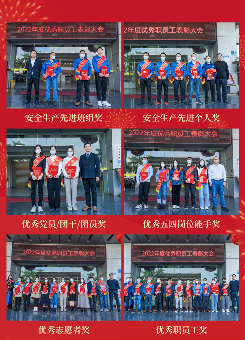 公司的發(fā)展離不開職員工的拼搏與堅守,大會對2022年涌現(xiàn)出的一批優(yōu)秀團隊和個人進行表彰,先后頒發(fā)了“安全生產(chǎn)先進班組獎”、“安全生產(chǎn)先進個人獎”、“優(yōu)秀黨員/團干/團員獎”、“優(yōu)秀五四崗位能手獎”、“優(yōu)秀志愿者獎”、“優(yōu)秀職員工獎”、“新人成長獎”、“節(jié)能高效獎”、“技術能手獎”、“技術先進個人獎”、“優(yōu)秀導師獎”、“優(yōu)秀服務獎”、“高效服務客戶獎”、“優(yōu)秀質(zhì)量管理獎”、“優(yōu)秀管理獎”、“優(yōu)秀管理小組獎”、“優(yōu)秀營銷精英獎”、“優(yōu)秀營銷團隊獎”、“八周年金獎”、“十周年金獎”等,楊彥總經(jīng)理、公司管理高層以及各部門負責人分別為獲獎的團隊和個人頒發(fā)榮譽證書、獎金等,號召全體職員工向他們學習,奮楫爭先,追求卓越!
