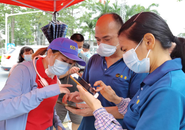 民興電纜志愿者阿川在指導市民完成掃碼信息登記